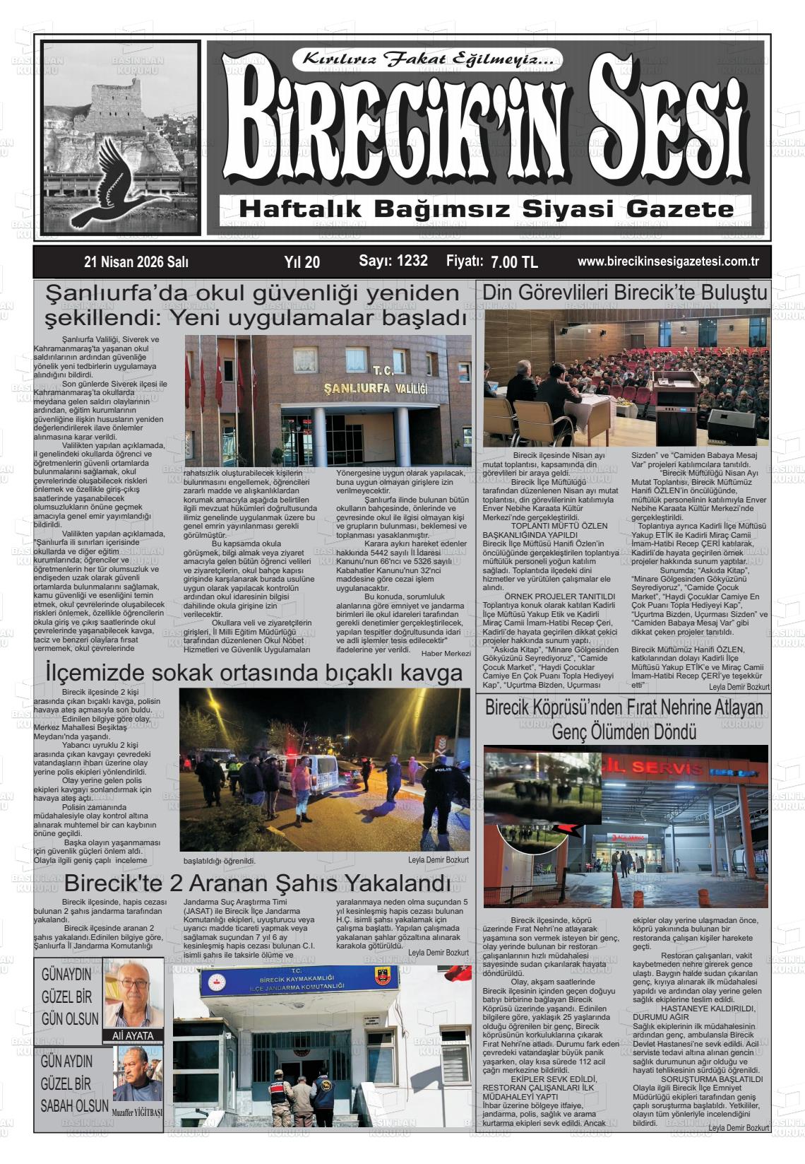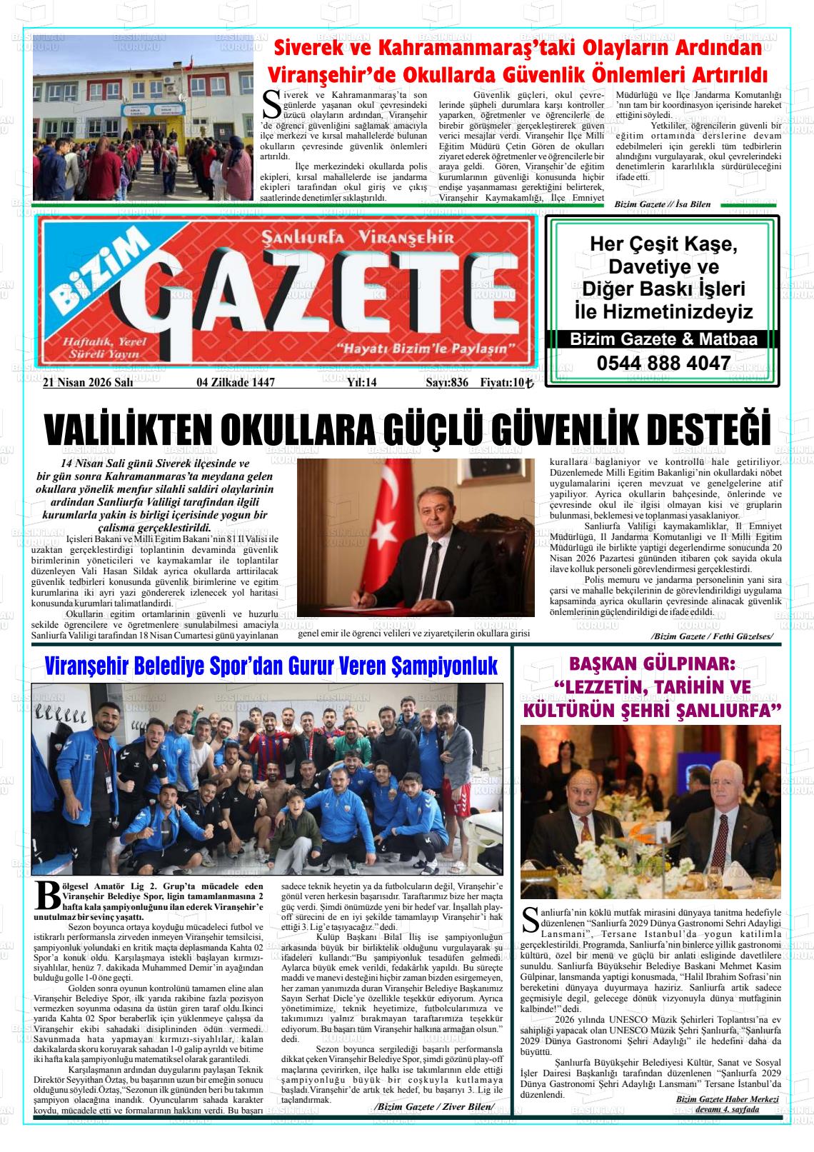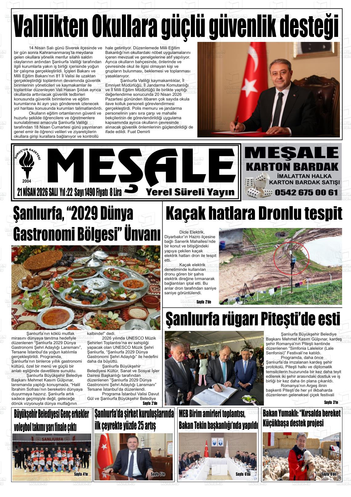 Şanlıurfa Yerel Gazeteleri 21 Nisan 2026, Salı Günü Manşeti