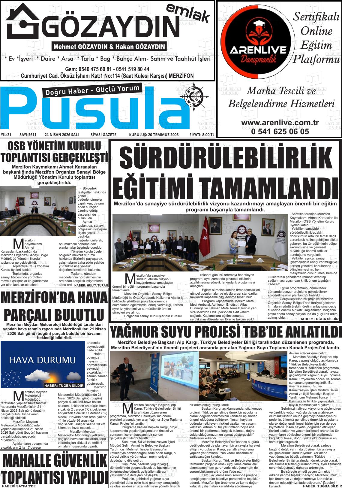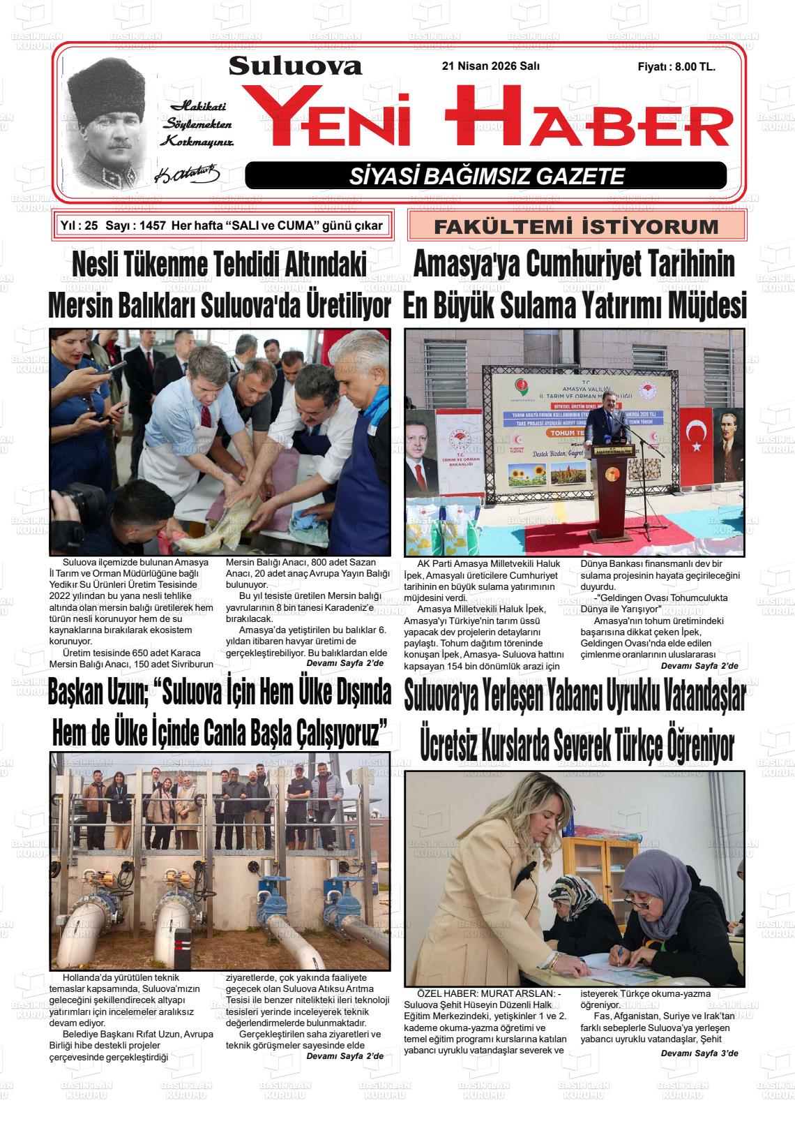 Amasya Yerel Gazeteleri 21 Nisan 2026, Salı Günü Manşeti