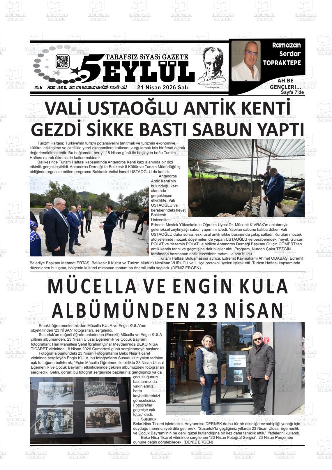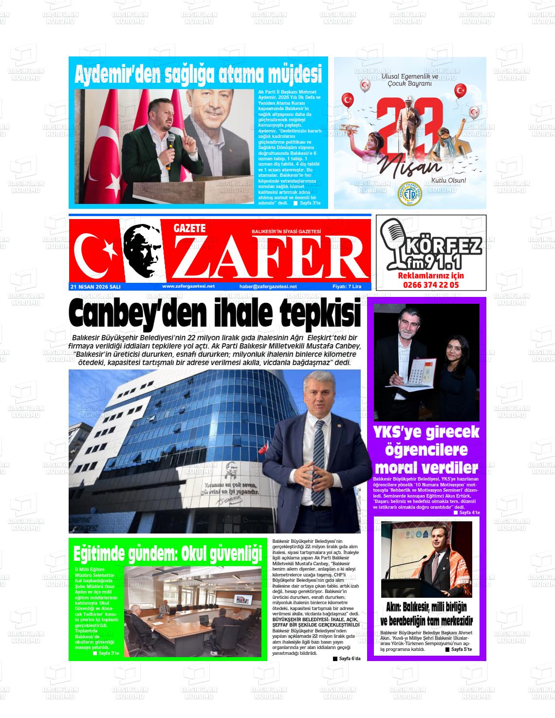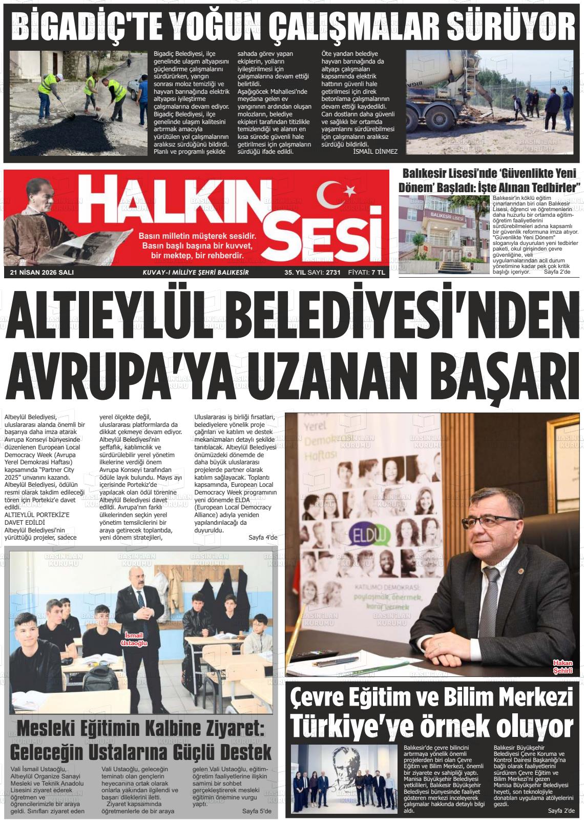 Balıkesİr Yerel Gazeteleri 21 Nisan 2026, Salı Günü Manşeti