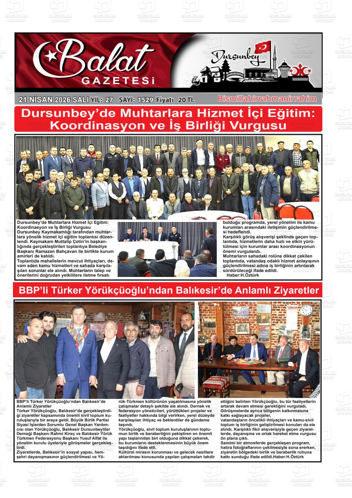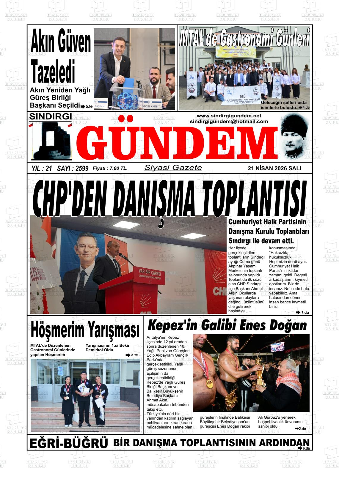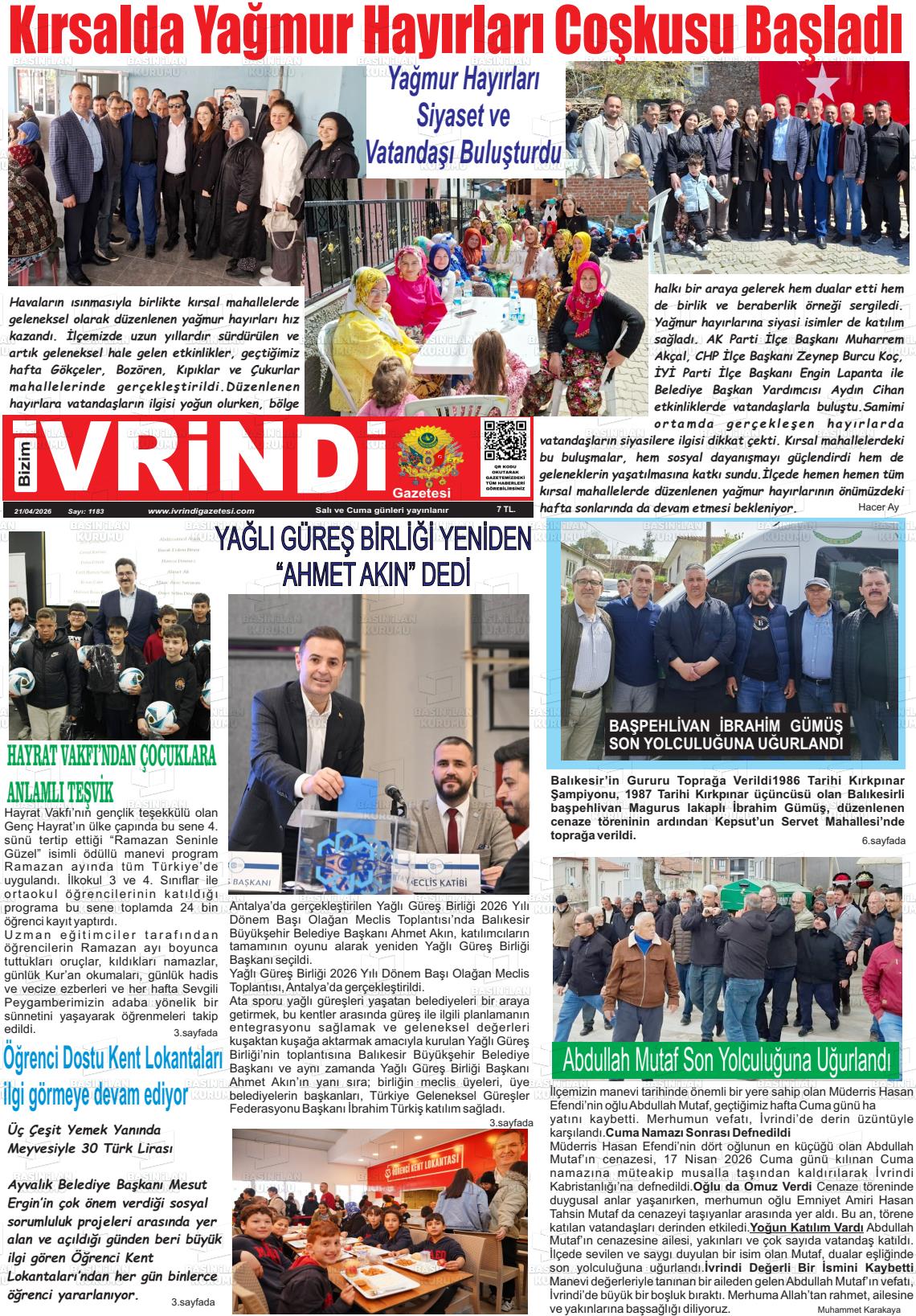 Balıkesİr Yerel Gazeteleri 21 Nisan 2026, Salı Günü Manşeti