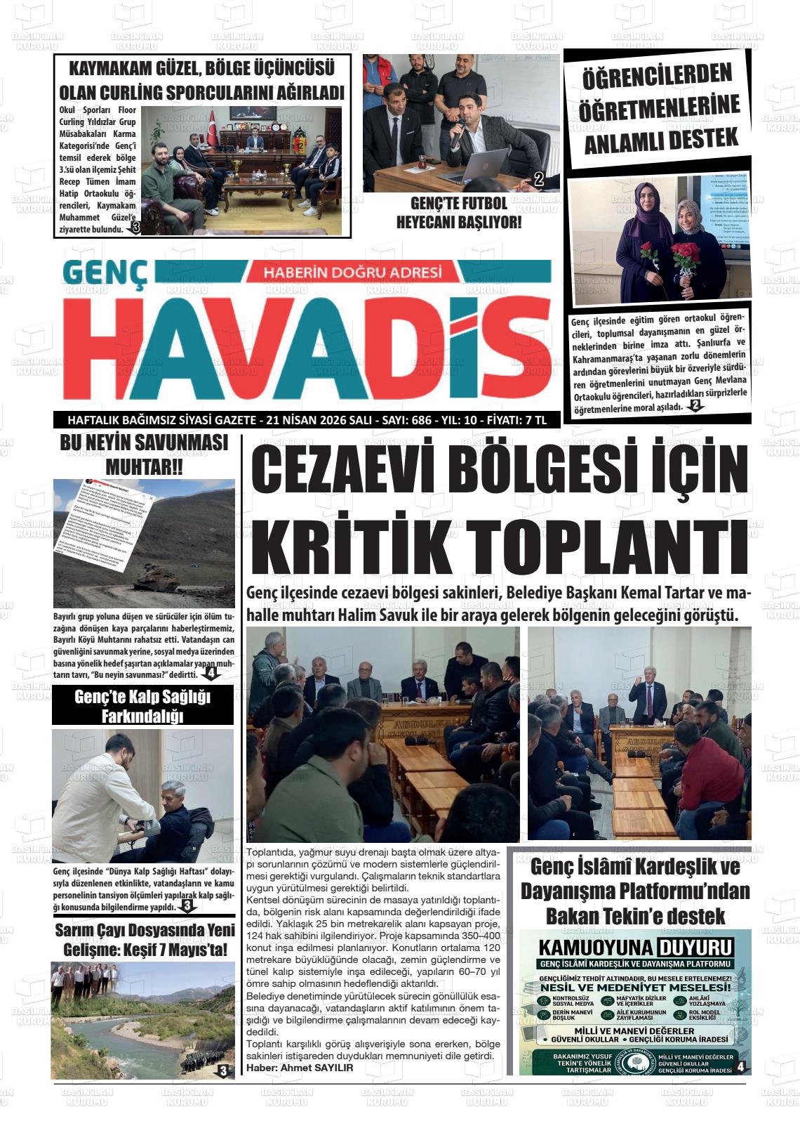 Bİngöl Yerel Gazeteleri 21 Nisan 2026, Salı Günü Manşeti