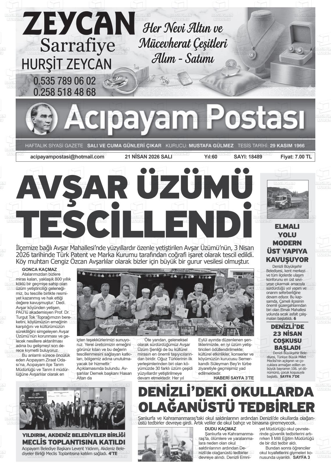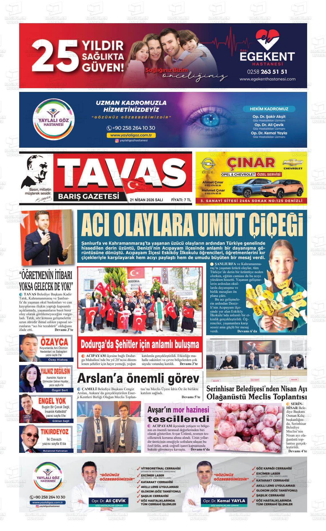 Denİzlİ Yerel Gazeteleri 21 Nisan 2026, Salı Günü Manşeti