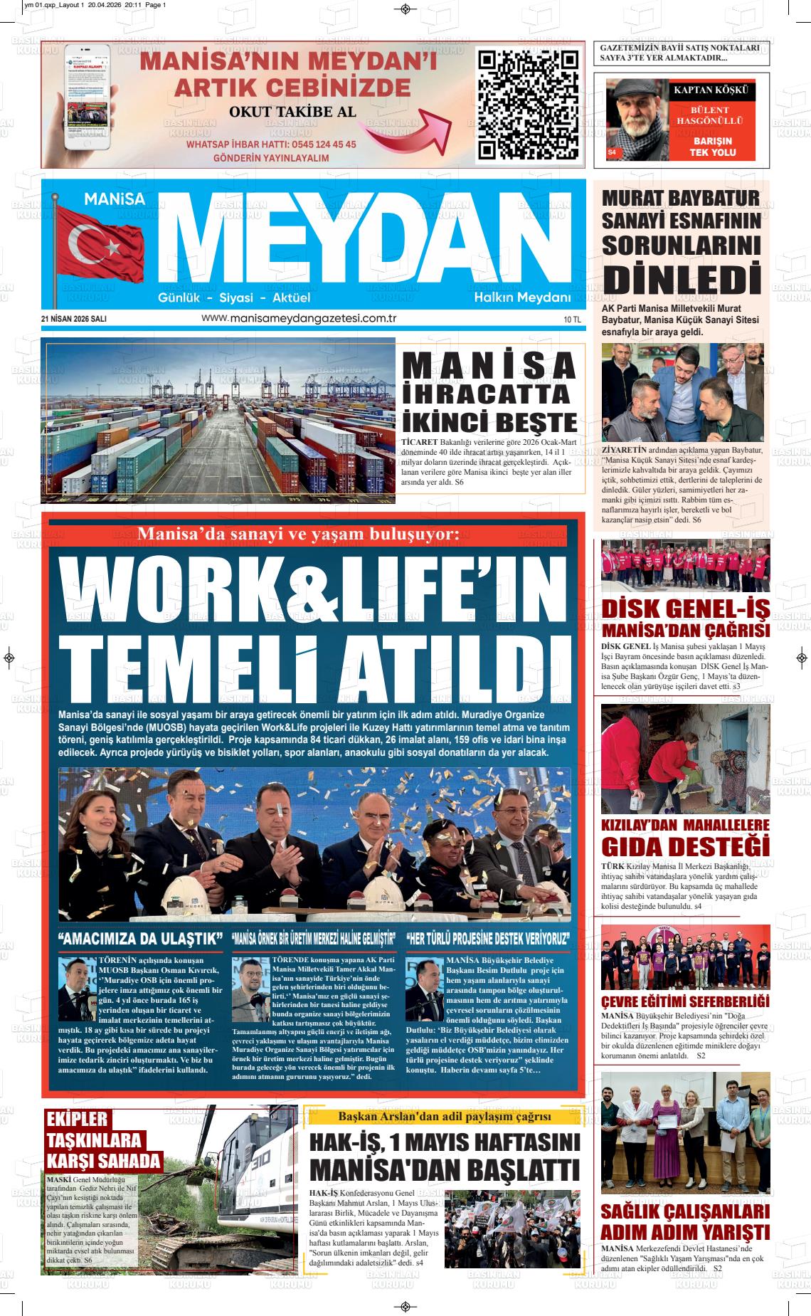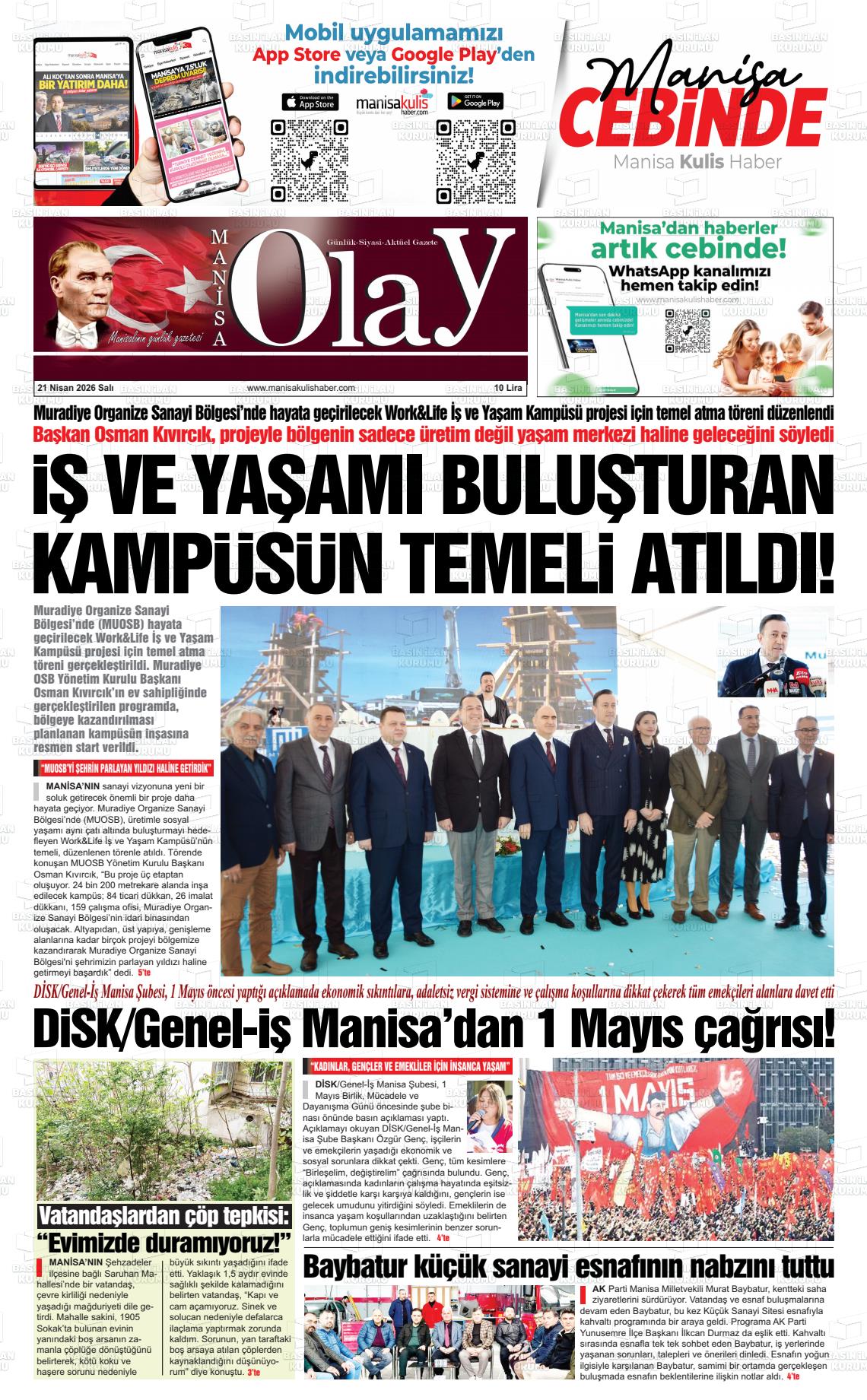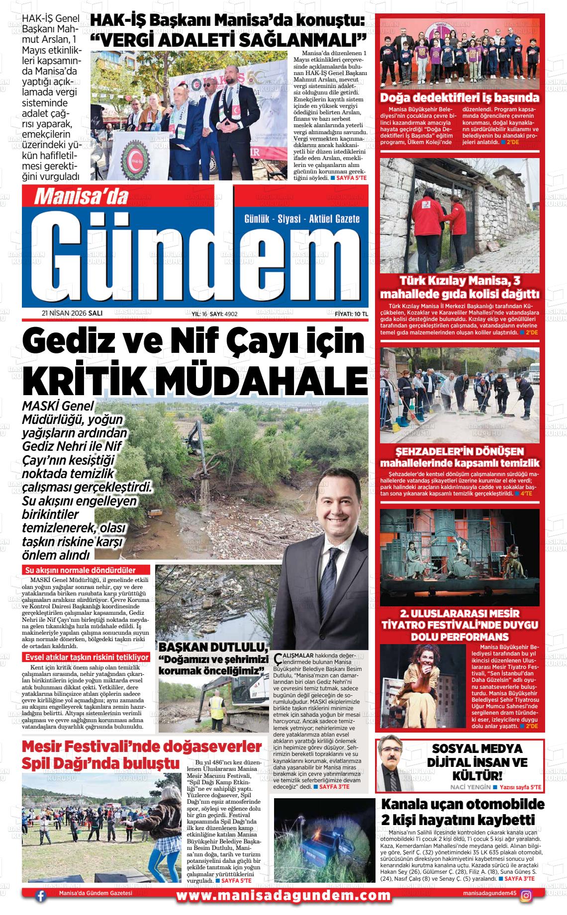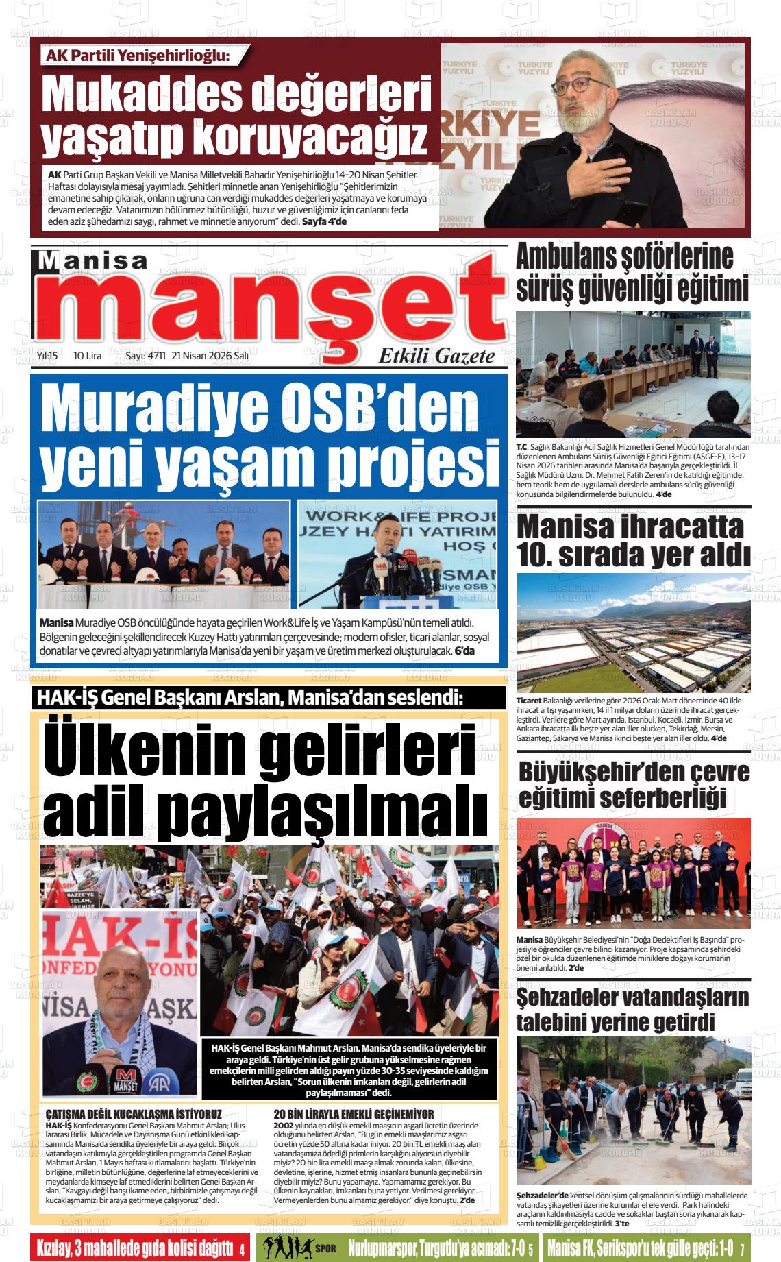 Manİsa Yerel Gazeteleri 21 Nisan 2026, Salı Günü Manşeti