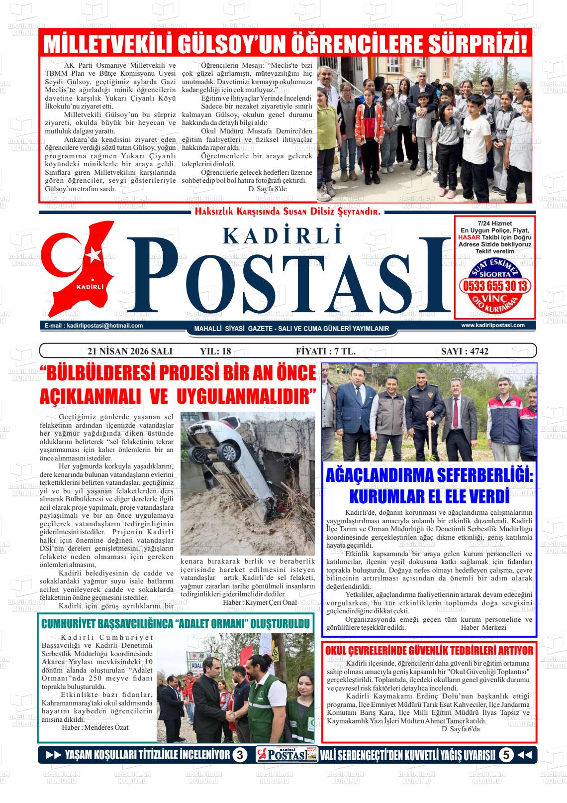 Osmanİye Yerel Gazeteleri 21 Nisan 2026, Salı Günü Manşeti