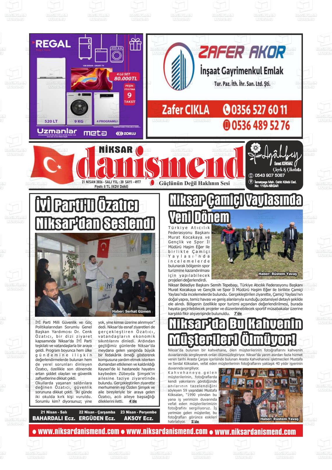 Tokat Yerel Gazeteleri 21 Nisan 2026, Salı Günü Manşeti