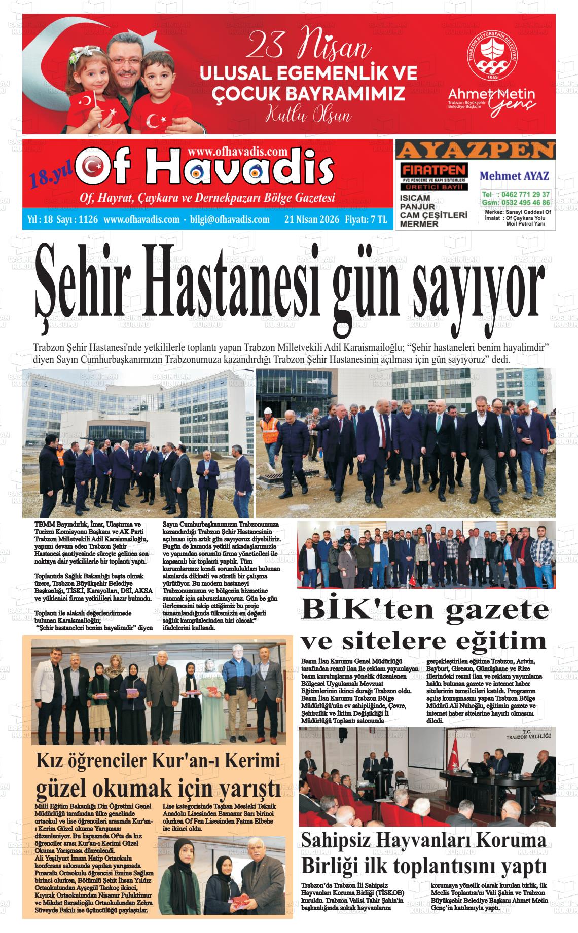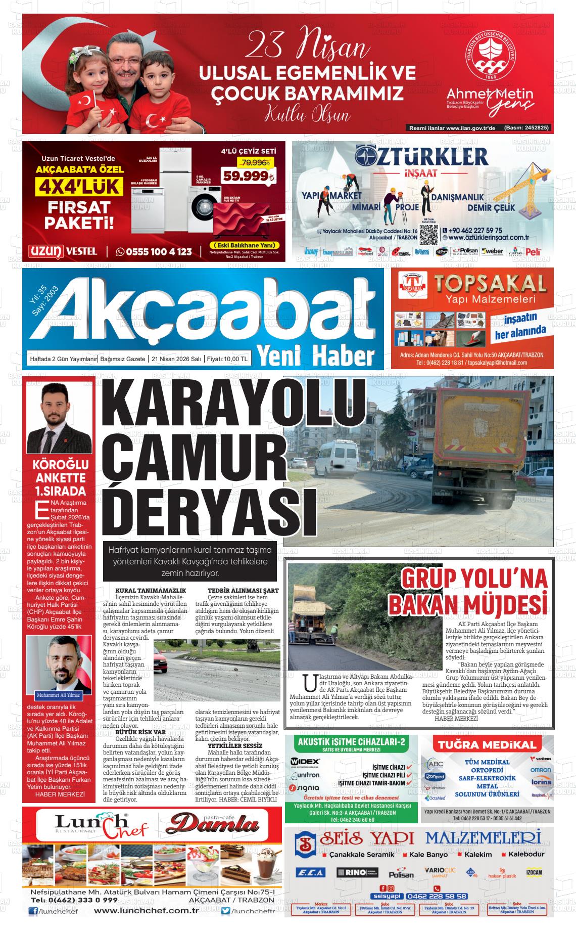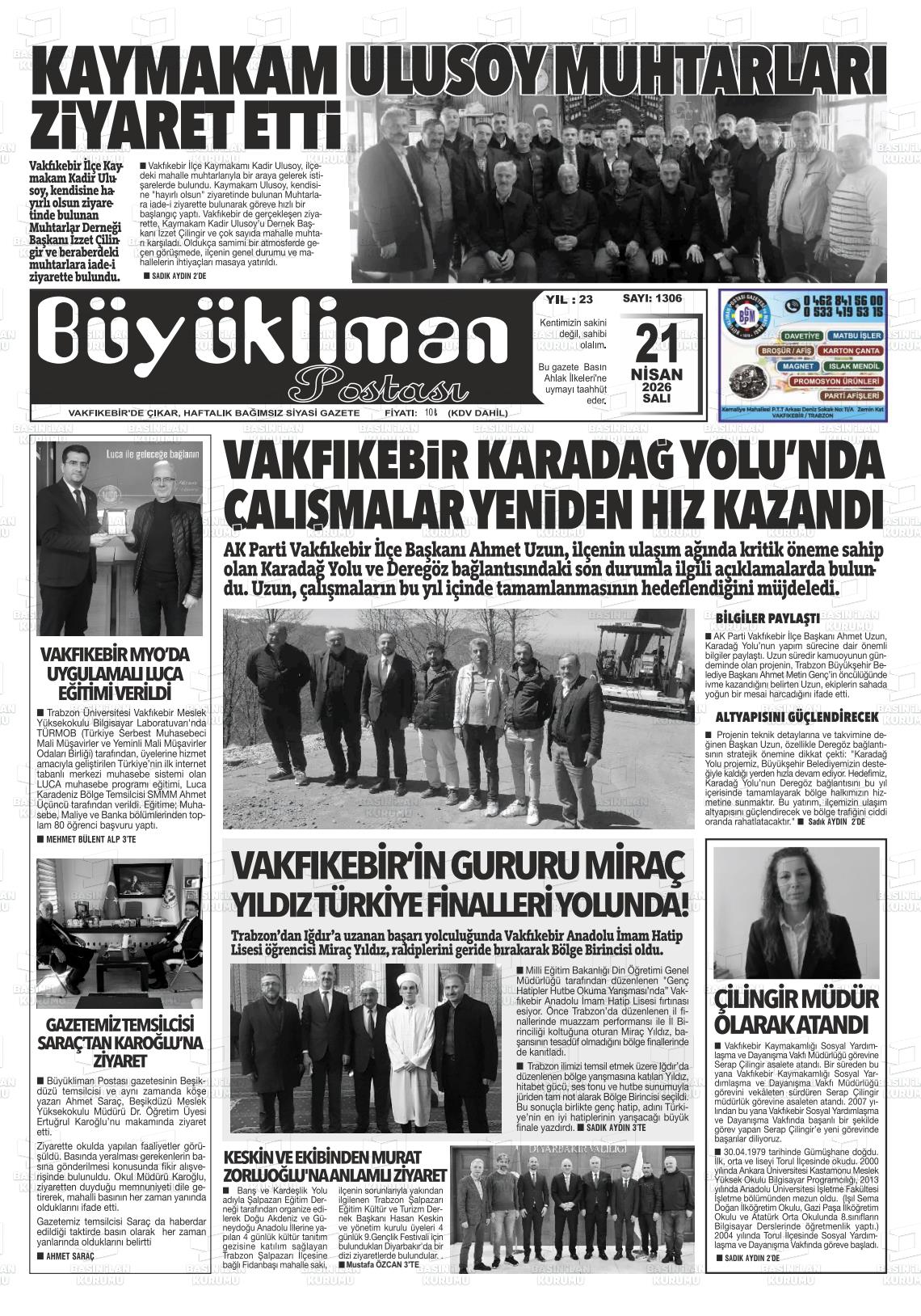 Trabzon Yerel Gazeteleri 21 Nisan 2026, Salı Günü Manşeti