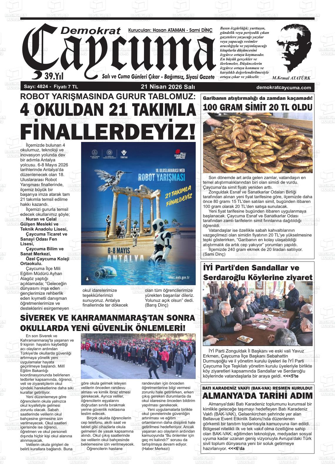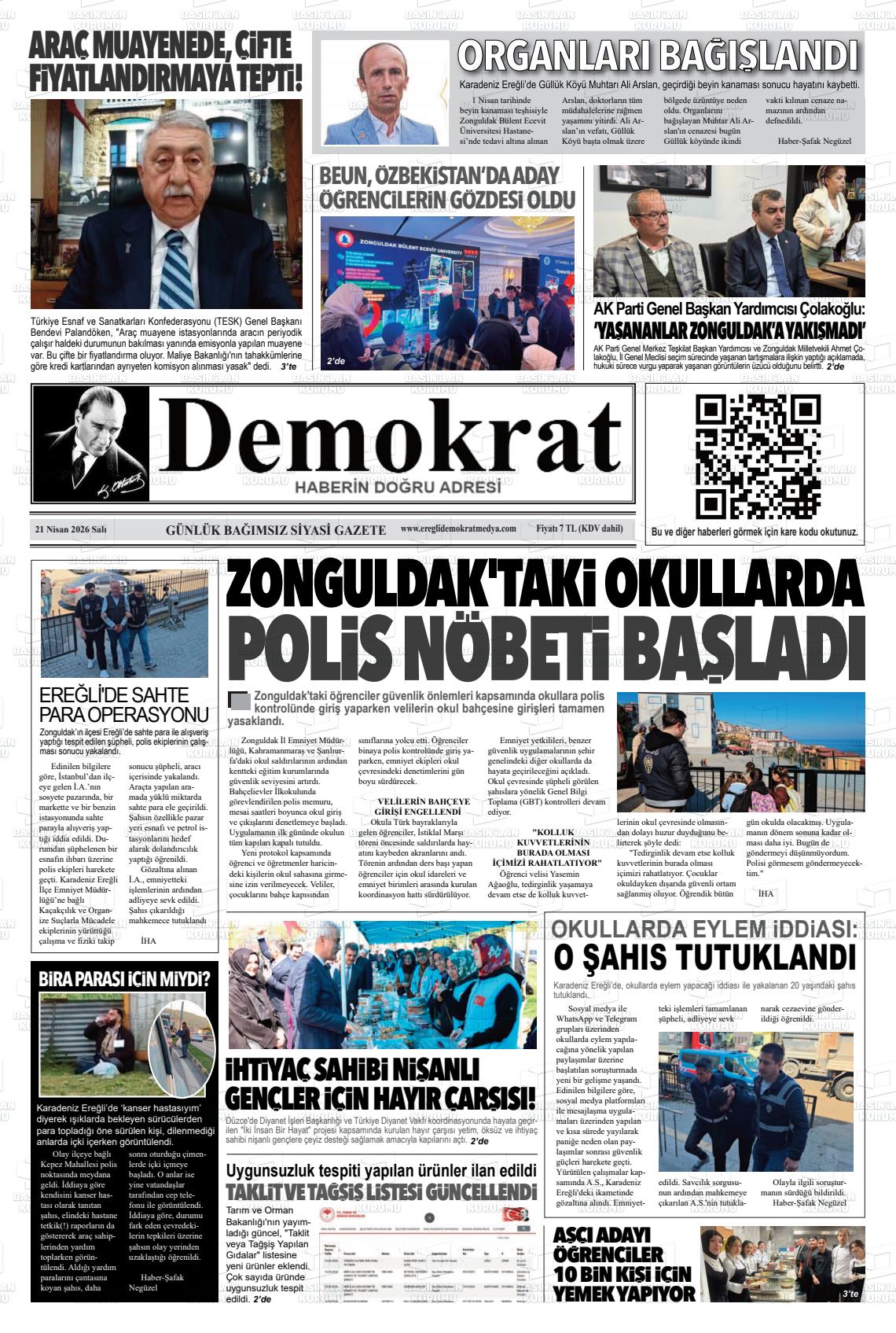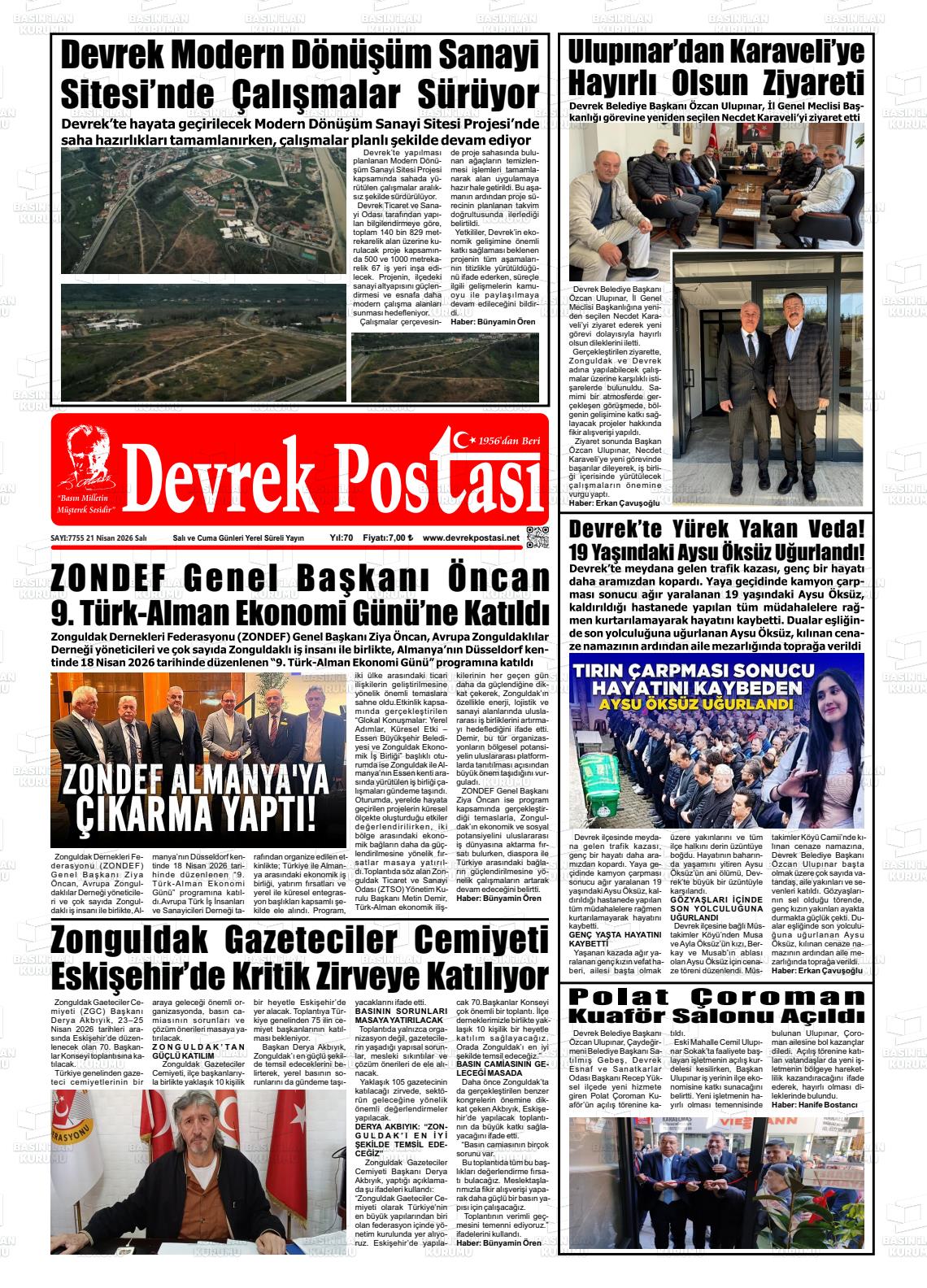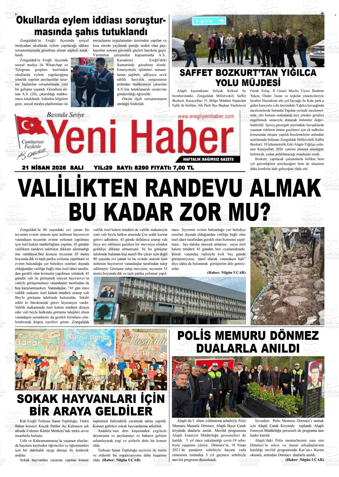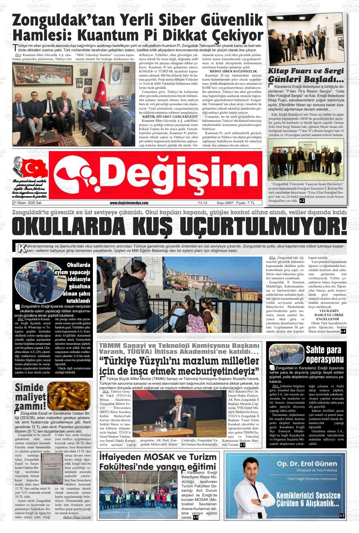 Zonguldak Yerel Gazeteleri 21 Nisan 2026, Salı Günü Manşeti
