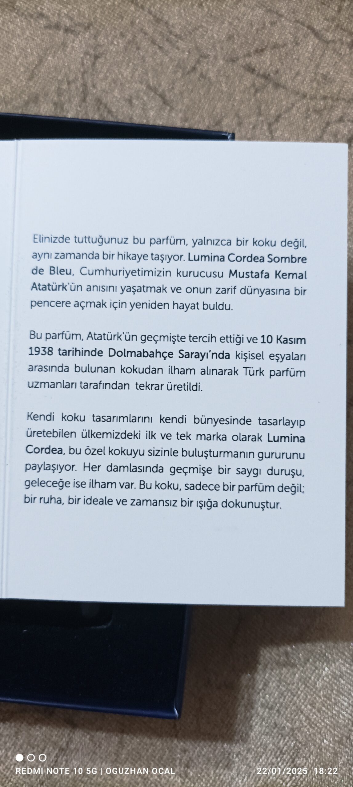 Bu gün elime bir koku geçti. Atatürk’ün derin ruhunu ve zamansız zarafetini selamlayan bir koku: Sombre de Bleu. Onun eskiden kullandığı ikonik parfümünden ilham alınarak yeniden üretilmiş.
